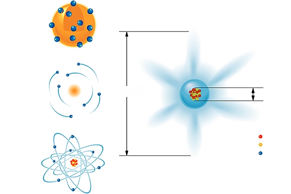 Comme il n'était pas possible d'observer la structure atomique, il fallait concevoir un « modèle » qui permît de comprendre des phénomènes physiques que l'on pensait être corrélés à une telle structure. Pour Hantaro Nagaoka (1904), le critère principal, emprunté aux phénomènes chimiques, devait expliquer la formation des molécules à partir des atomes. Il imaginait l'atome comme une structure stable, semblable à la planète Saturne : il plaçait les électrons sur les anneaux et assimilait la planète au noyau. Tout en acceptant que le critère de comparaison devait être fourni par la chimie, J. J. Thomson pensait, au contraire, que les électrons circulaient à l'intérieur d'une sphère dont la surface était chargée positivement.