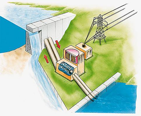 Les roues hydrauliques ont animé pendant longtemps les moulins à céréales, mais aussi des installations artisanales ou industrielles. L'invention de la turbine hydraulique puis de la dynamo et enfin de l'alternateur ont ouvert une voie importante vers l'hydroélectricité qui constitue la source d'énergie renouvelable la plus utilisée dans le monde. Le principe consiste à créer une retenue d'eau en barrant le cours d'une rivière, et à utiliser l'énergie potentielle de l'eau accumulée.