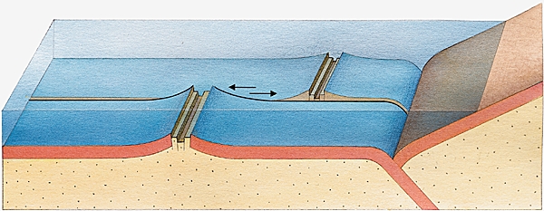Des failles transformantes décalent la dorsale tous les 200 à 300 km. Elles s’expliquent par une activité magmatique distincte en chaque point de la dorsale, ce qui entraîne des vitesses d’expansion différentes de chaque segment. Cependant, elles assurent une divergence uniforme sur une surface sphérique, celle du globe terrestre.