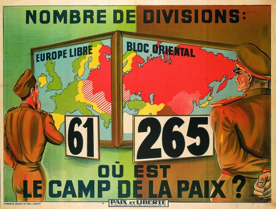 La probabilité d'une agression en Europe paraît augmenter d'autant. La politique de défense des États-Unis prend sa forme définitive dans la directive de sécurité nationale de 1950 (NSC-68), élaborée par le haut fonctionnaire américain Paul H. Nitze, qui fixe comme objectif la dissuasion par l'acquisition de la supériorité à tous les niveaux.