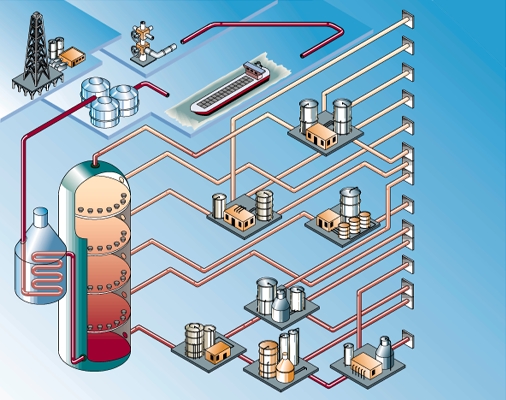 On dénombre autant de qualités de pétrole brut que de gisements ; elles diffèrent entre elles non seulement par leurs propriétés physiques (densité, viscosité, etc.), mais surtout par leurs compositions chimiques. Outre les quatre types fondamentaux d'hydrocarbures (paraffines, oléfines, naphténiques et aromatiques) qui se trouvent en proportions très variables d'un gisement à l'autre, le pétrole contient diverses substances, telles que soufre, eau salée, traces de métaux qui le rendent pratiquement inutilisable à l'état brut. Le raffinage est l'ensemble des opérations et procédés industriels mis en œuvre pour traiter et transformer, au moindre coût, le pétrole brut en produits finis. L'opération fondamentale du raffinage est la distillation fractionnée continue, dont la plupart des produits font ensuite l'objet de traitements supplémentaires pour en améliorer la qualité : reformage catalytique de l'essence lourde, hydrodésulfuration du gazole. On obtient finalement toute une série de produits répondant aux besoins des consommateurs : carburants, essences spéciales, combustibles et produits divers.